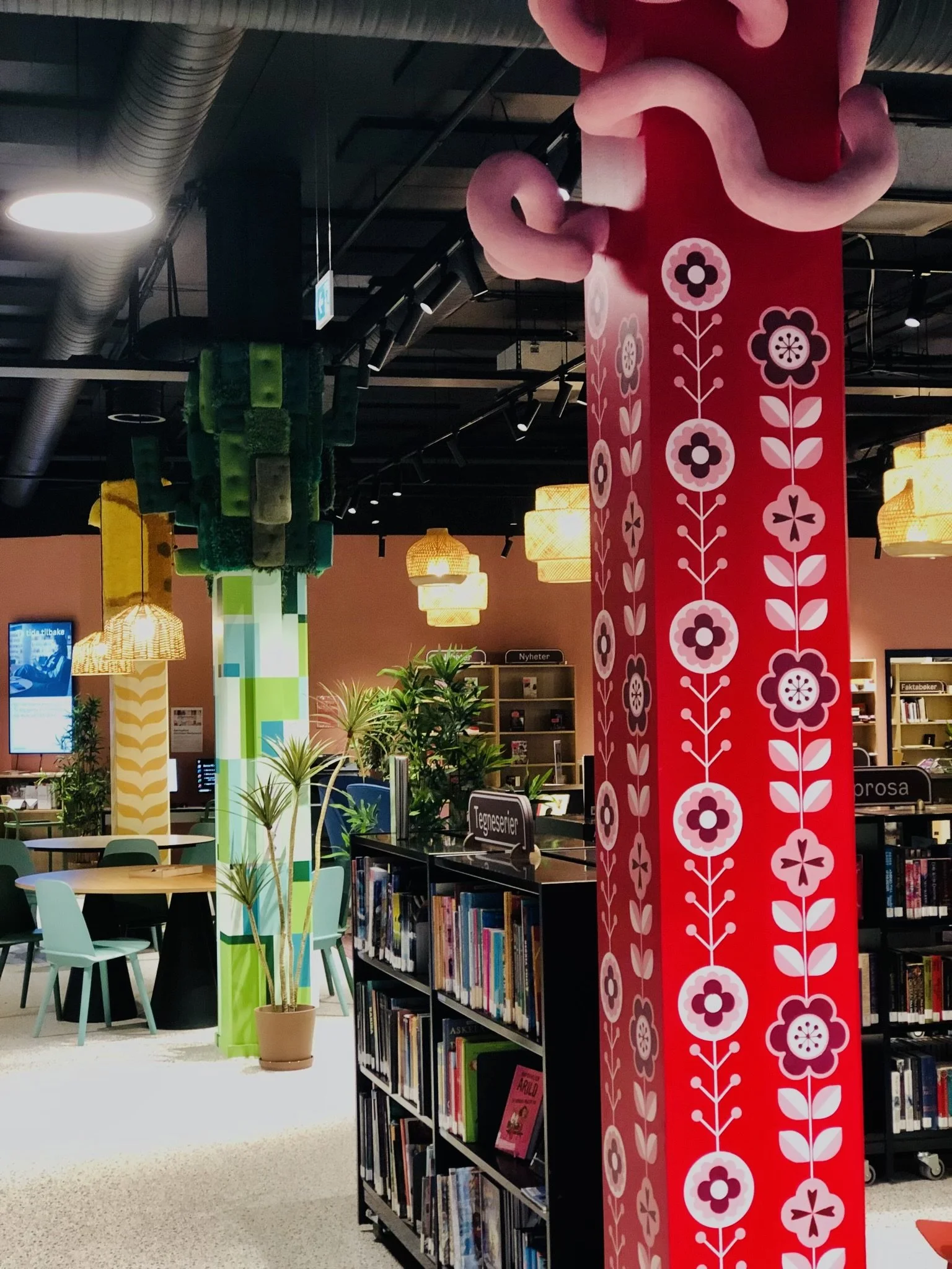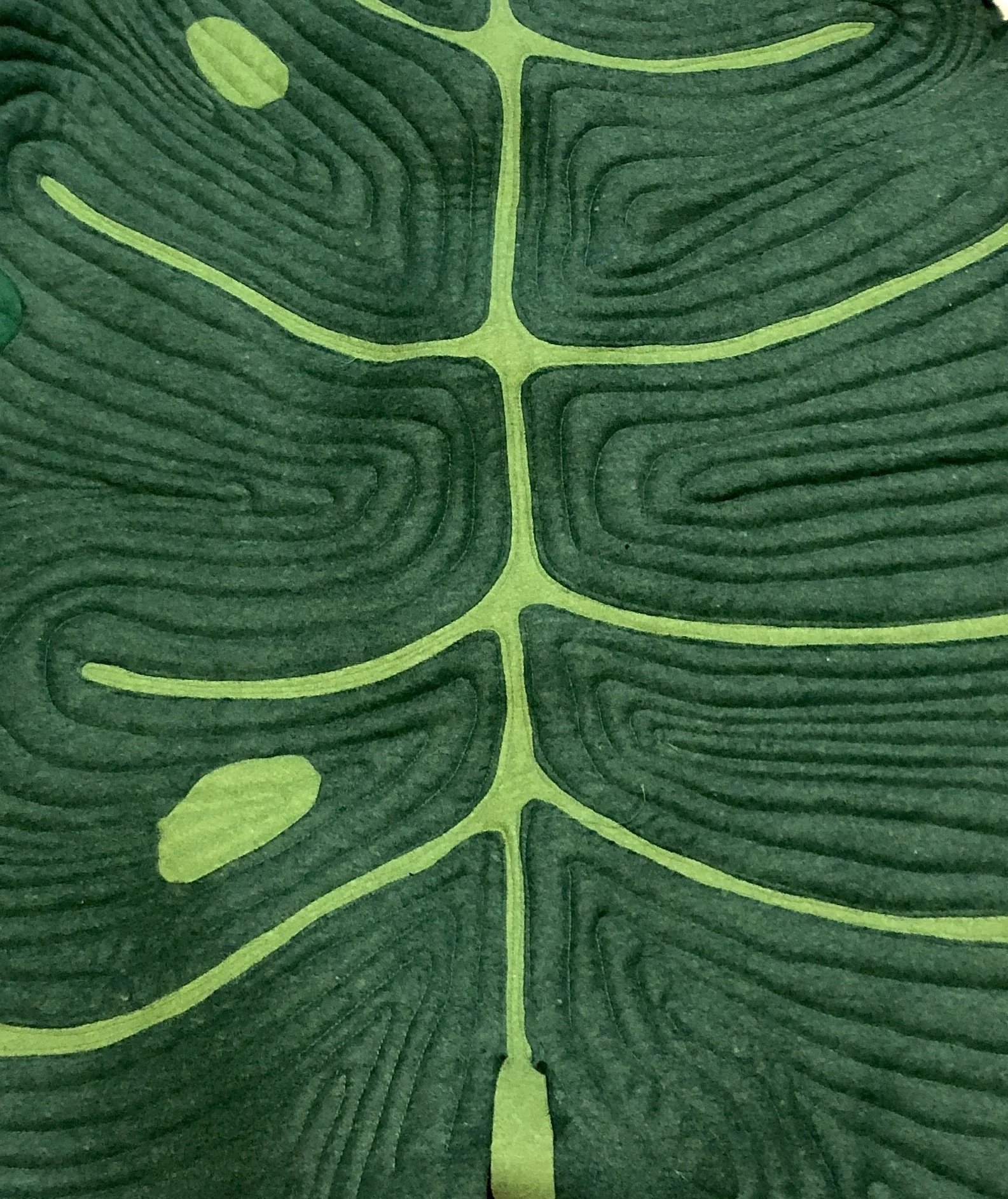Tuftet teppe til Deichman bibliotek filial Mortensrud. Materialer ullgarn, strie og latex.