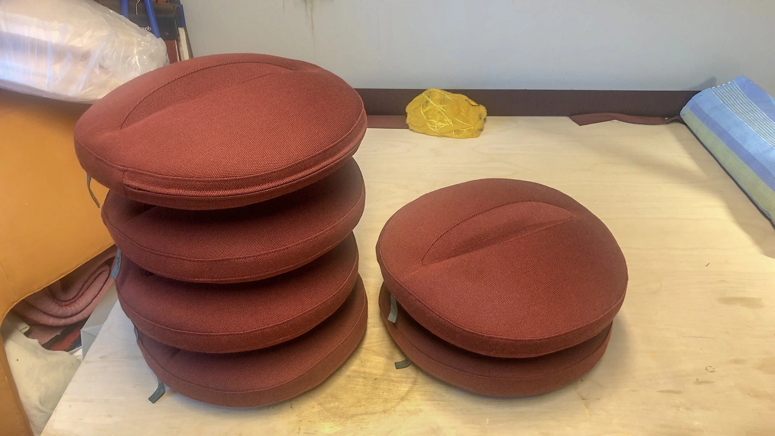 Lesehusene som ble opprinnelig laget i 2016 ble spredt til ulike filialer og 3 av dem er på Fubiak. Her blir de reparert med nytt sete i ull stoff fra Bute.